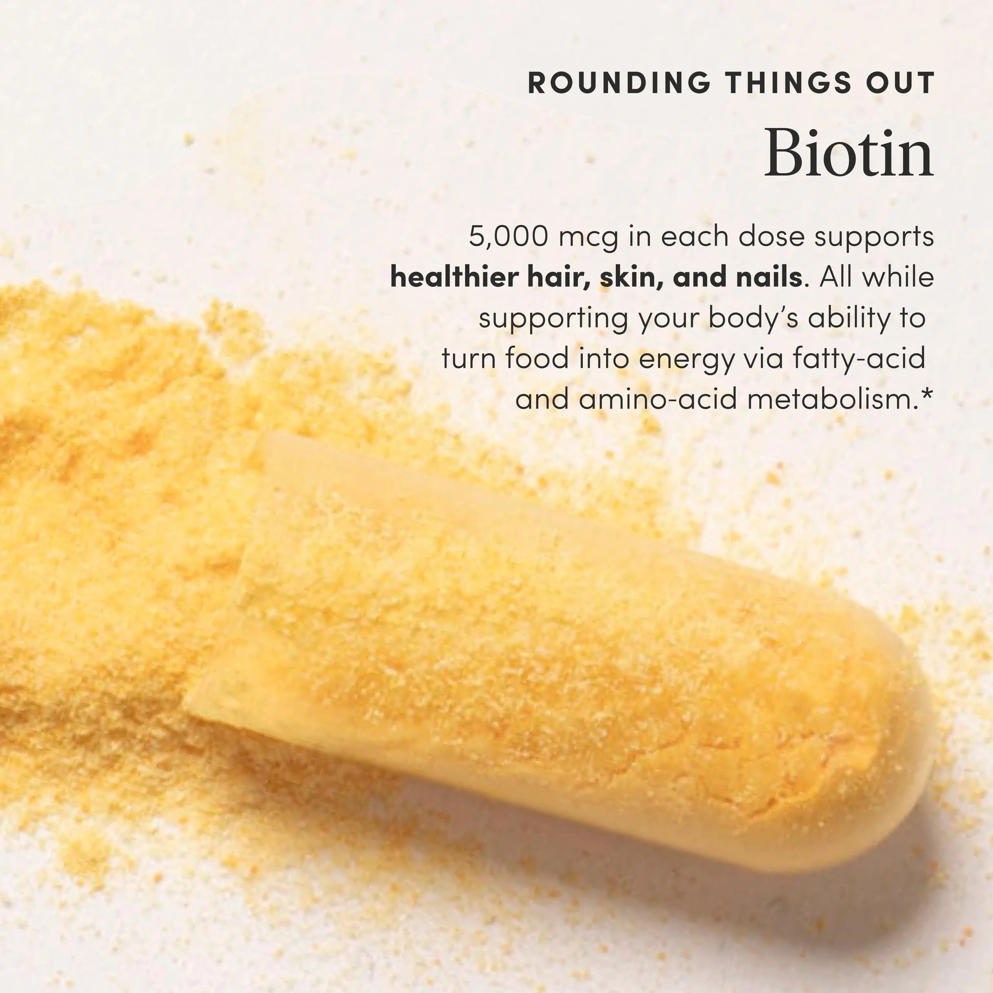 Promotes healthy hair, skin & nails and, more importantly, supports the body’s ability to turn food into energy via fatty‑acid and amino‑acid metabolism.*