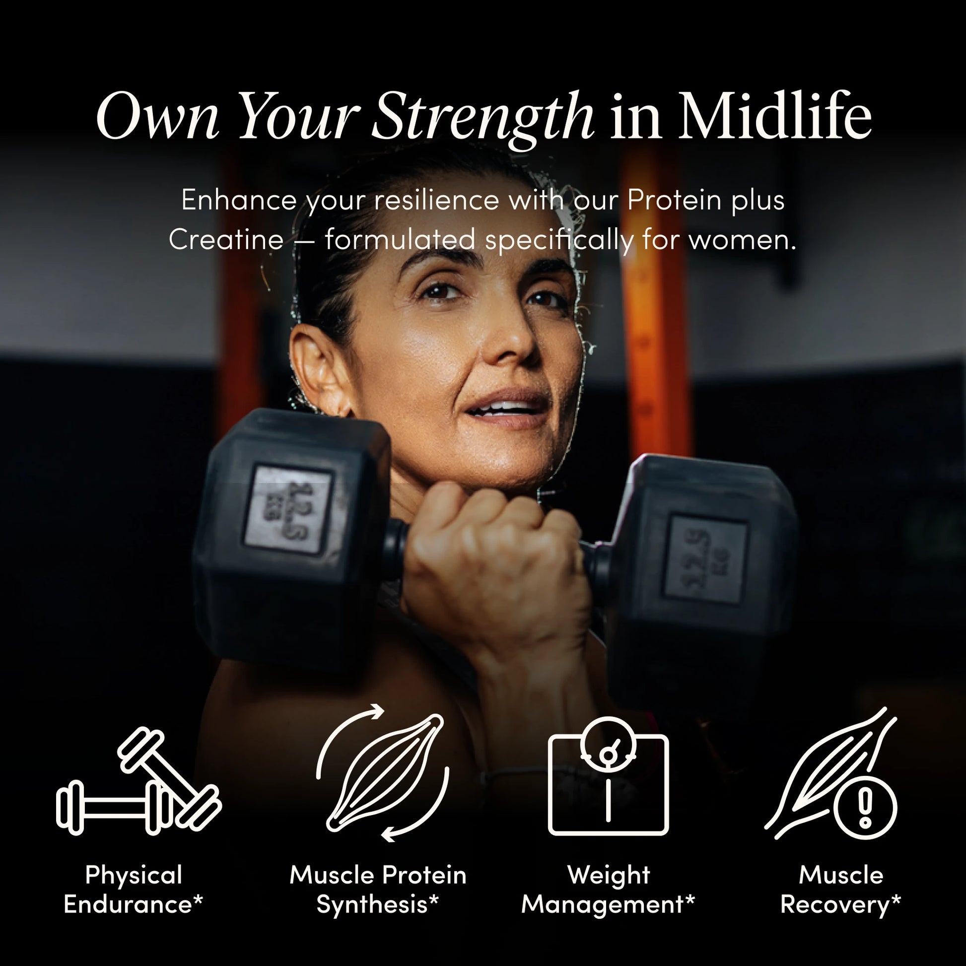 As we move through midlife, the body naturally changes, muscle mass declines, energy levels fluctuate, and strength health becomes a bigger priority. That’s why we created a formula that combines two of the most researched and trusted nutrients: whey protein and creatine monohydrate.