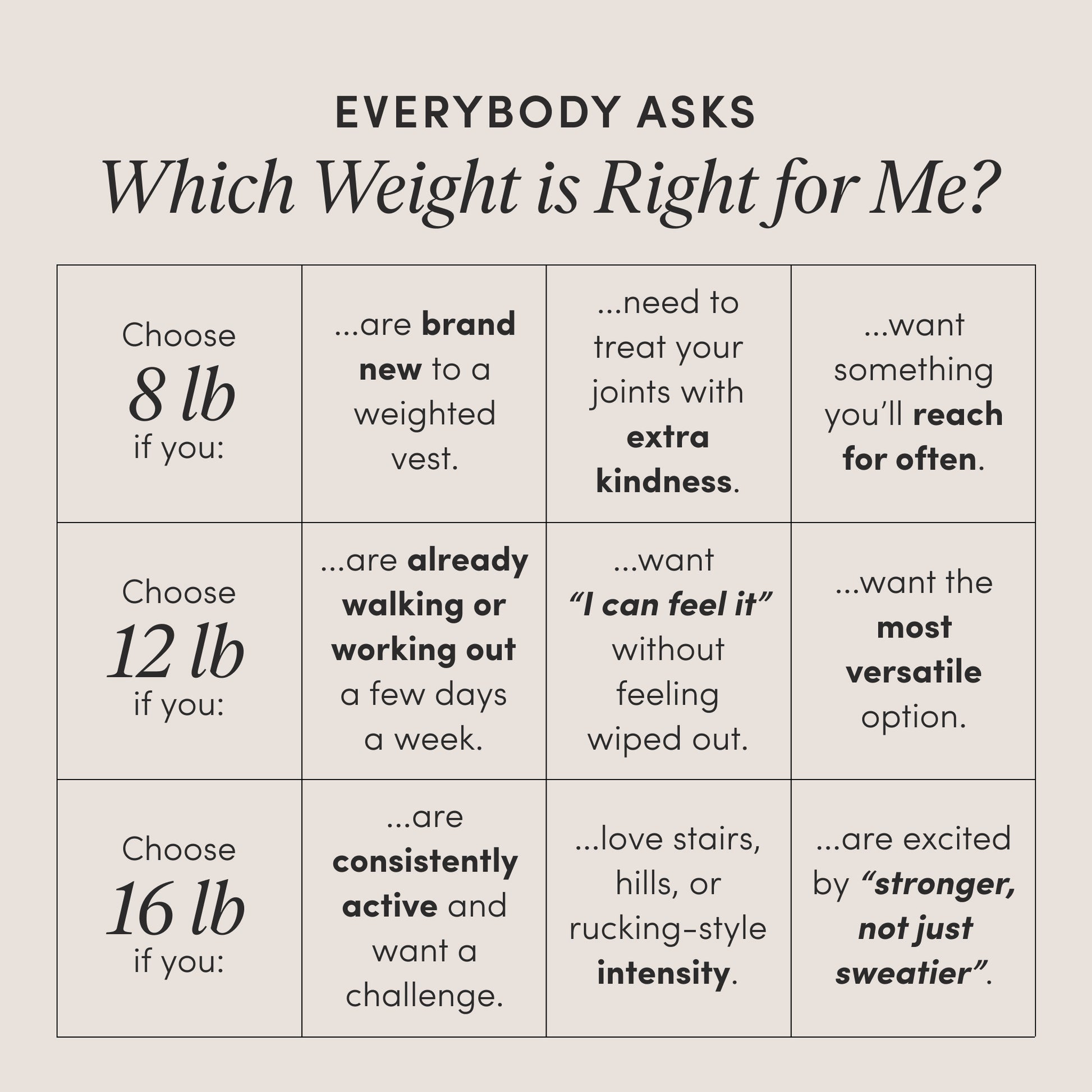 Resistance for daily motion. Low-profile and walk-ready - available in 8, 12 or 16 pounds. NOT eligible for Buy More, Save More.